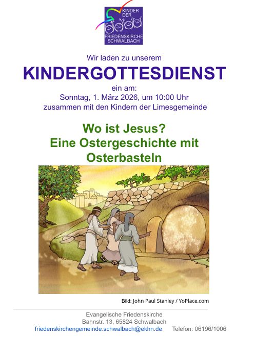 Sonntag, 01.03. 10:00 Uhr - gemeinsamer Kindergottesdienst in der Friedenskirche