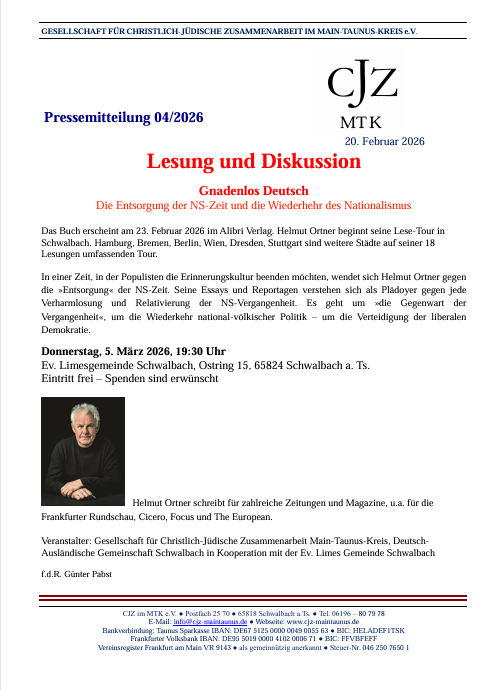 Lesung und Diskussion mit Helmut Ortner am 5.3. um 19.30 Uhr